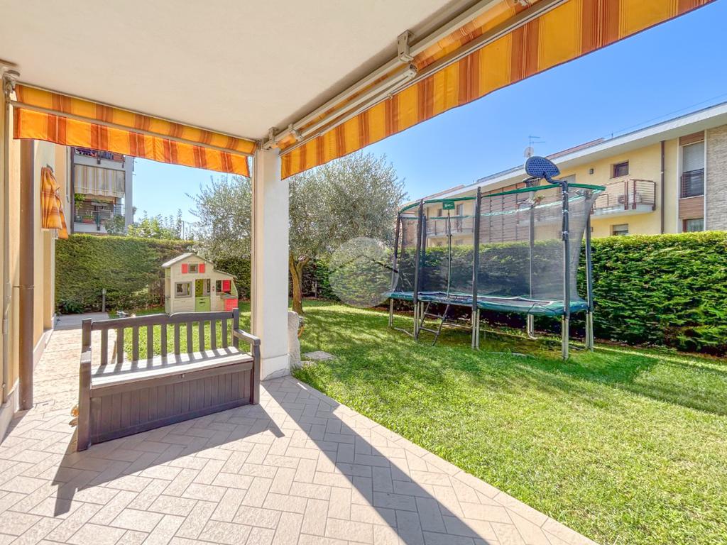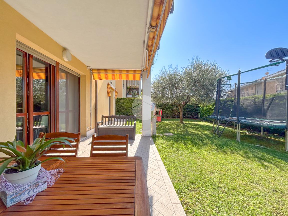 In una prestigiosa residenza del 2008, a soli 600 metri dal centro di Bardolino, si presenta questa eccezionale abitazione di piano terra, libera su tre lati e immersa in un grazioso giardino privato.
