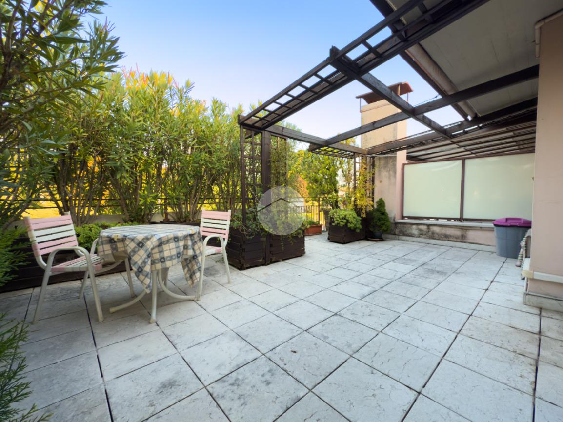 L’appartamento si compone di un unico locale dove troviamo angolo cottura una zona salotto e per mezzo di una porta divisoria a tutta parete la camera da letto ed un ampio bagno con doccia finestrato. Il Terrazzo di circa 40 mq è il pezzo forte della proprietà consentendo la possibilità di pranzare e rilassarsi mantenendo la privacy. Completa la proprietà un garage singolo al piano interrato.