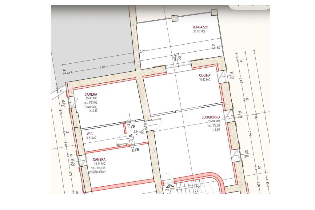 La soluzione che vi presentiamo è un appartamento trilocale di generose dimensioni posto al piano primo e dotato di un terrazzo coperto; al suo interno si compone di una ampia zona giorno, una cucina abitabile con uscita sul terrazzo, due camere da letto (matrimoniale e doppia) e due bagni.