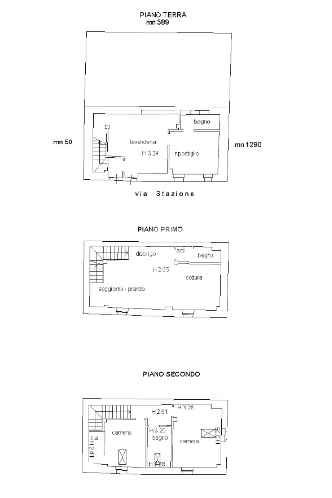 L’immobile disposto su tre livelli è attualmente diviso al suo interno in due distinte unità ognuna con accesso indipendente; la prima al piano terra è un comodo e pratico bilocale con bagno; la seconda unità con accesso al piano terra si dispone al piano primo dove si trova una ampia zona giorno e un bagno per poi salire al piano secondo dove si trova la zona notte con due camere matrimoniali (una delle quali con cabina armadio) e un bagno.