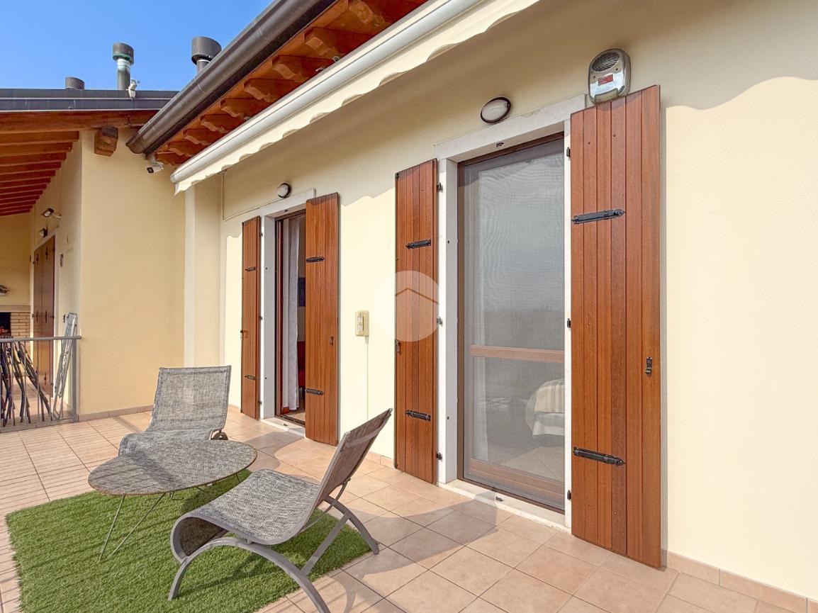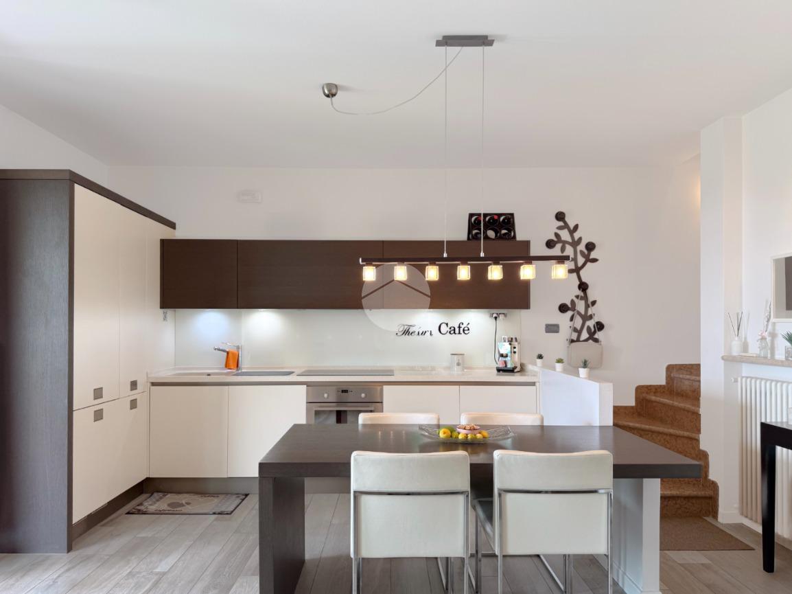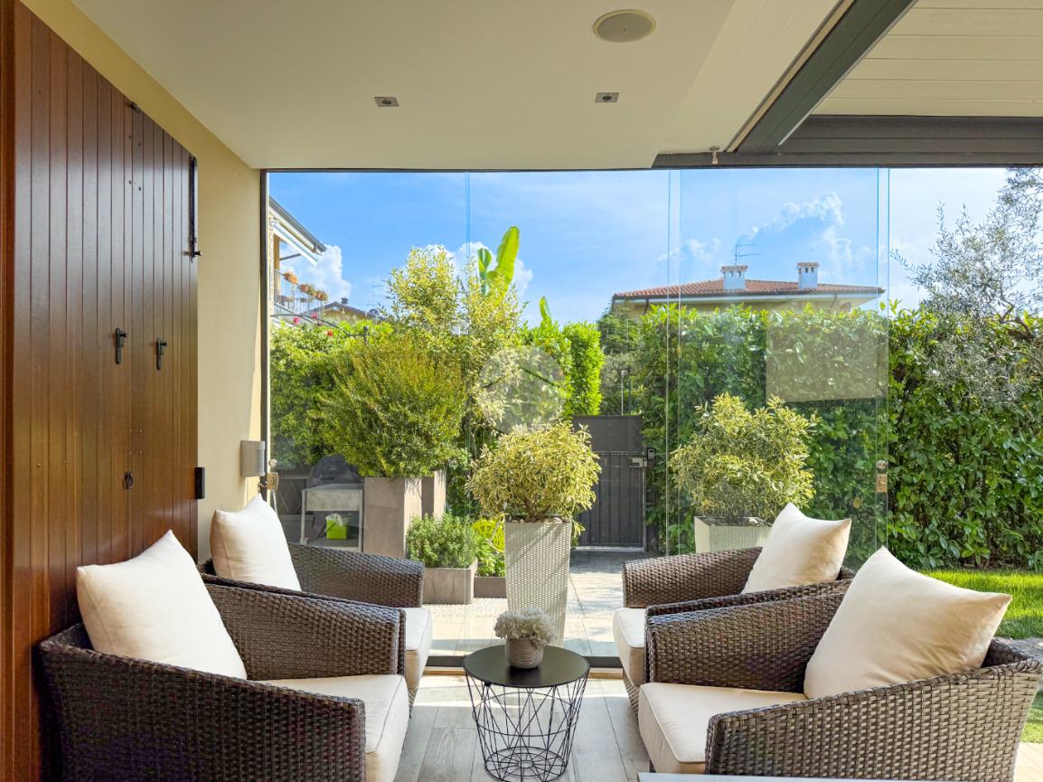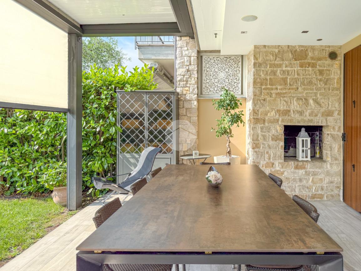 BARDOLINO: a pochi passi dal centro paese proponiamo interessante soluzione di villa a schiera d'angolo con giardino privato di circa 200 mq inserita in contesto di residence con piscina. L'abitazione che gode di un ingresso indipendente pedonale e carraio si sviluppa su quattro livelli. Al piano interrato troviamo due ampie camere da letto finestrate, un bagno e una taverna; al piano primo al quale si accede per mezzo di una comoda scala troviamo un bagno finestrato e la zona giorno con ampia vetrata che conduce ad un patio esterno protetto da vetrate scorrevoli direttamente sul giardino, perfettamente curato e piantumato; al piano primo due grandi camere da letto con uscita sul grande terrazzo e un bagno con finestra; al piano secondo e ultimo una grande mansarda adibita a camera da letto con un ulteriore bagno. A completare la proprietà due garage di cui uno direttamente collegato all' abitazione e un posto auto esterno. Soluzione ideale sia come prima casa viste le grandi dimensioni sia come casa vacanze.