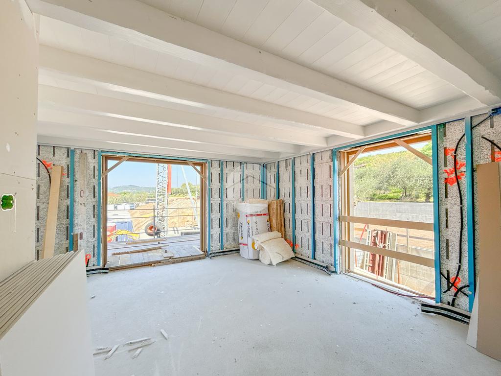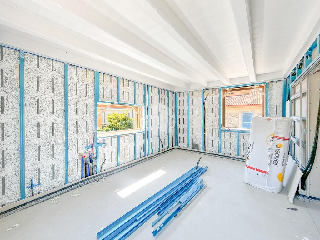 Tale certificazione sarà resa possibile da un importante pacchetto termo isolante sulle murature perimetrali e solai, muri divisori interni in cartongesso a doppia parete, riscaldamento e raffrescamento in pompa di calore ad aria senza quindi rendere necessario l’allaccio al gas metano), serramenti in legno a triplo vetro ad alto isolamento termo – acustico, impianto fotovoltaico per la gestione delle apparecchiature elettriche comuni.