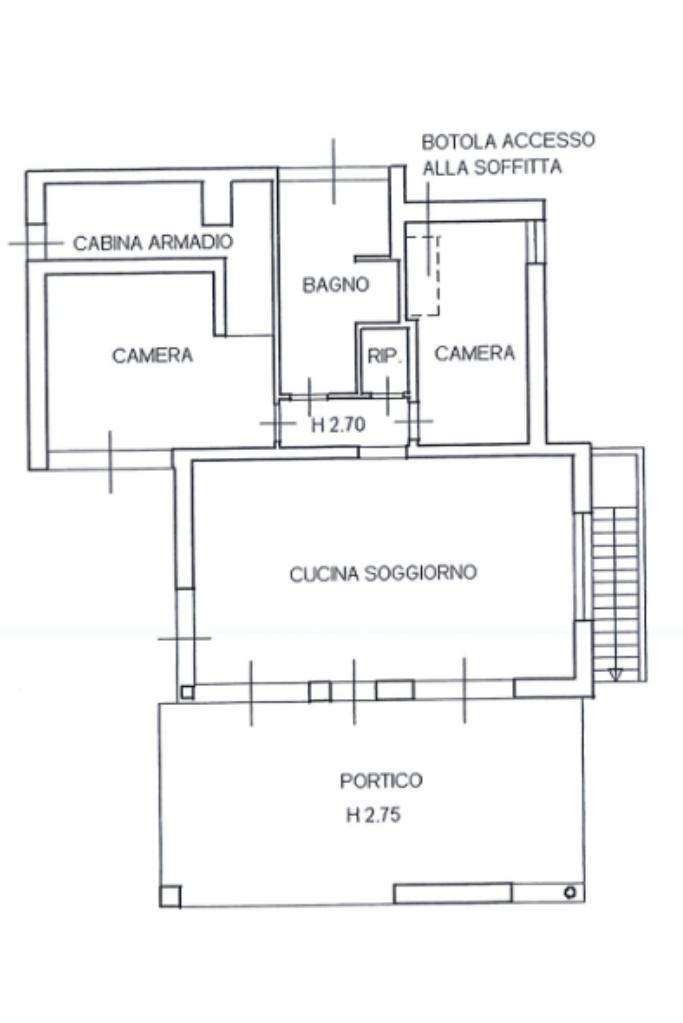 Al piano primo (mansardato) troviamo un locale unico adibito a camera da letto con bagno.